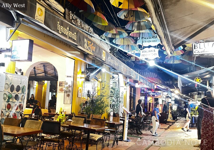 シェムリアップ中心部、パブストリートのすぐ近くにありながら、少し路地に入った場所に広がる「Alley West」。